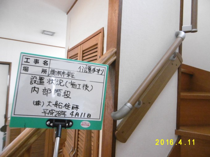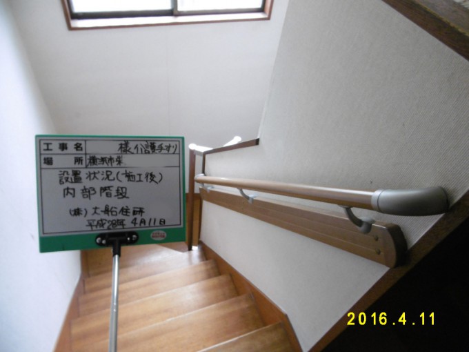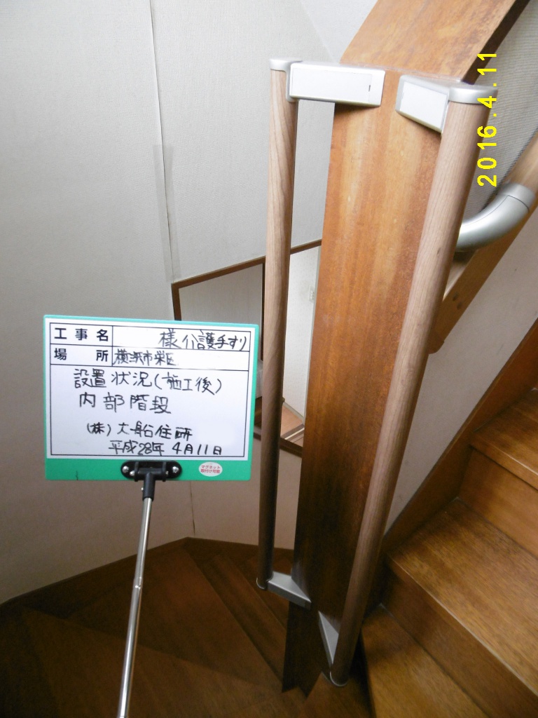 栄区T様邸 介護保険利用手すり設置工事 補助金利用 顧客の方から介護保険を利用して、階段に手すりを設置したいとご依頼いただきました。 階段の幅をあまり狭くしたくないとのことだったので、廻り階段のところは I 型の手すりを2本つけました。 それにより、身体の態勢が不安定になりがちな廻り部分でも捕まる箇所が増え、安定して昇り降りできるようなりました。 大船住研は数多くの介護保険を利用した工事をしています。お気軽にご相談ください! 物件データ 立地 本郷台 工事期間 1日 家族構成 3人 担当者 M.I 作成N.T 前のページ一覧へ戻る 次のページ