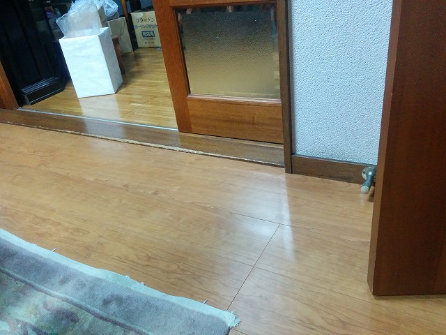 部屋がつながるキッチン・廊下は以前重ね張り施工済だったので、今回の工事でバリアフリー化することも出来ました。