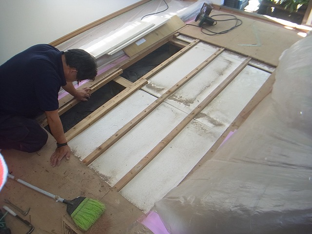 鎌倉市Y様邸 床修繕工事 内装 弊社の顧客の方より、床がフカフカするという事で、ご相談を頂きました。 現状確認にお伺いすると、カーペット敷きの床で、よく人が通る部分のみですがかなり沈み込みがあるようです。 カーペット自体の更新は考えていないという事でしたので、カーペットをめくっての下地補強をご提案させて頂きました。 今回は部屋の中にピアノがあったため、一筋縄では行かず、大工さんと2人がかりで仕上げさせていただきました。 物件データ 立地 鎌倉市 築年数 30年以上 工事期間 2日間 担当者 H.T 前のページ一覧へ戻る 次のページ