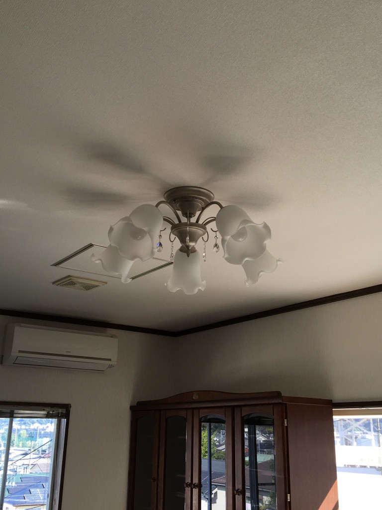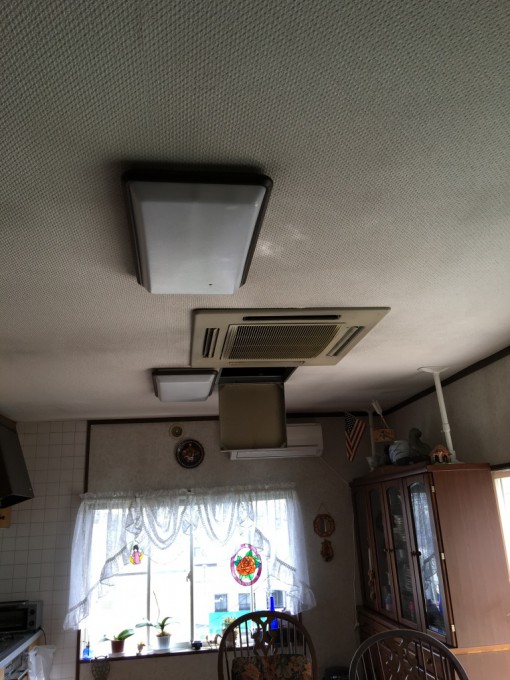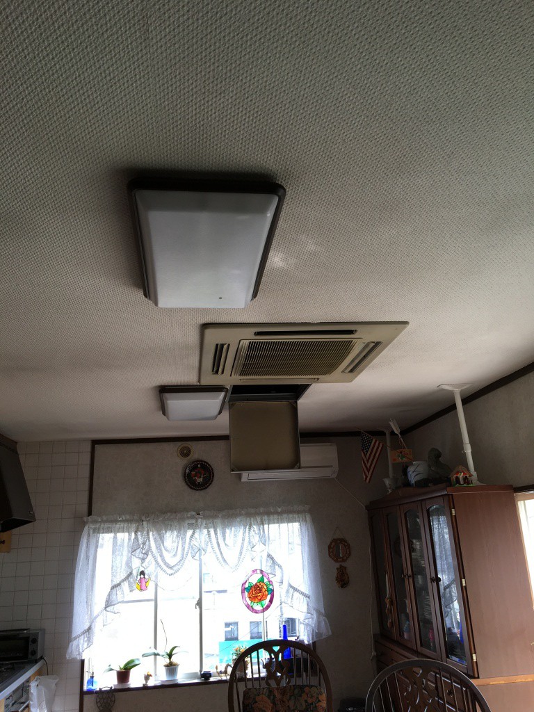 お伺いすると、リビングの天井に2つの照明と埋め込み型のエアコンが