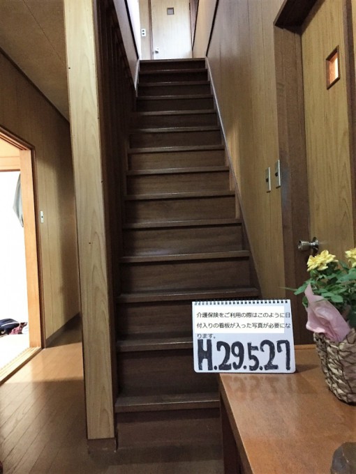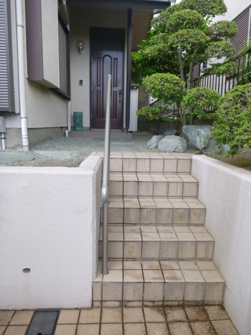 お客様より、階段の上り下りが怖いので、中と外に手すりを取り付けてほしいとご依頼をいただきました。