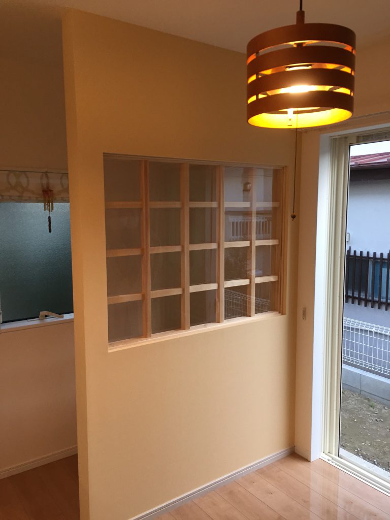 金沢区 S様邸 間仕切り工事 その他 この度、間仕切り壁新設のご依頼を頂きました。 間仕切り壁を設けつつ、窓が付いてるような感じにしたいとのことでした。 ご予算の関係もあるので今回はガラス等は入れず、アクリル板で対応し格子を大工さんに造作してもらい、間仕切り壁を新設致しました。 物件データ 工事期間 約3日 担当者 担当K.K 前のページ一覧へ戻る 次のページ