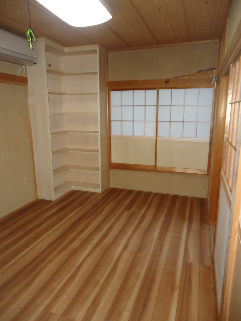 和室の改装工事を行いました。床を畳からフローリングに張替えて本棚を設置しました。