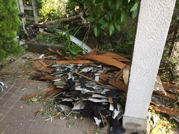 強風で屋根材・野地板が飛ばされ大雨により家中が雨の被害になってしまいました。