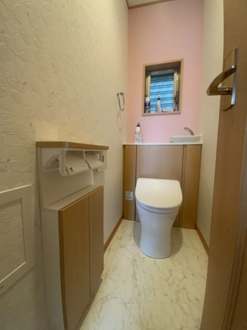 トイレのクロスは一面アクセントをご採用いただき、とても可愛らしい印象になりました。